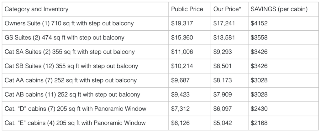 *Port charges of $305/person are INCLUDED in price.